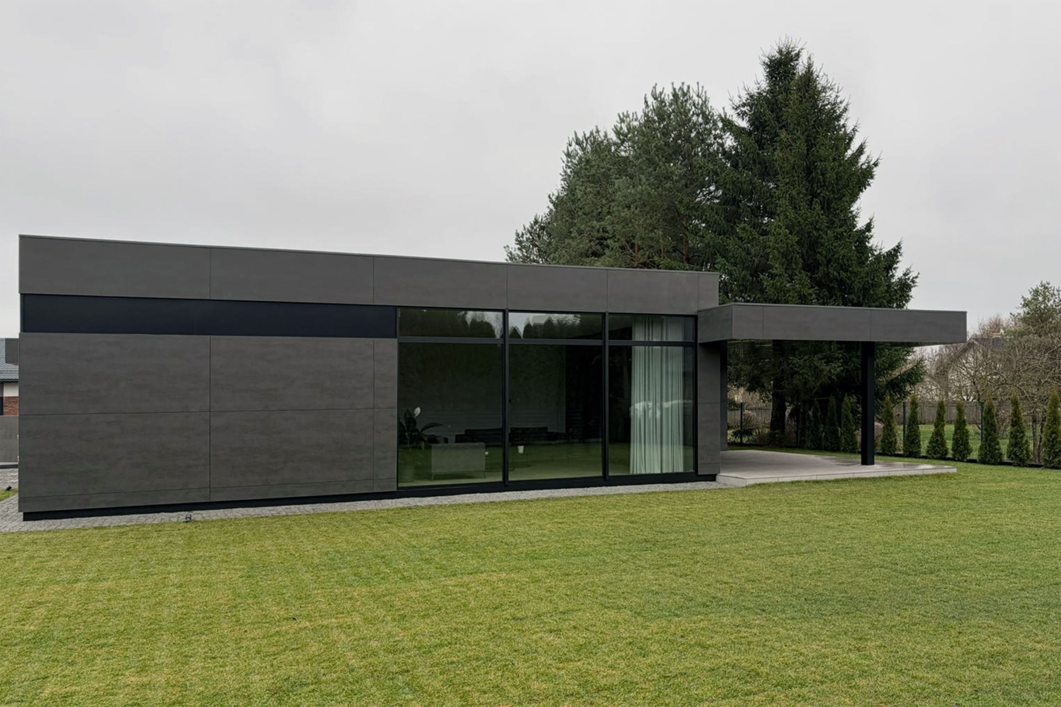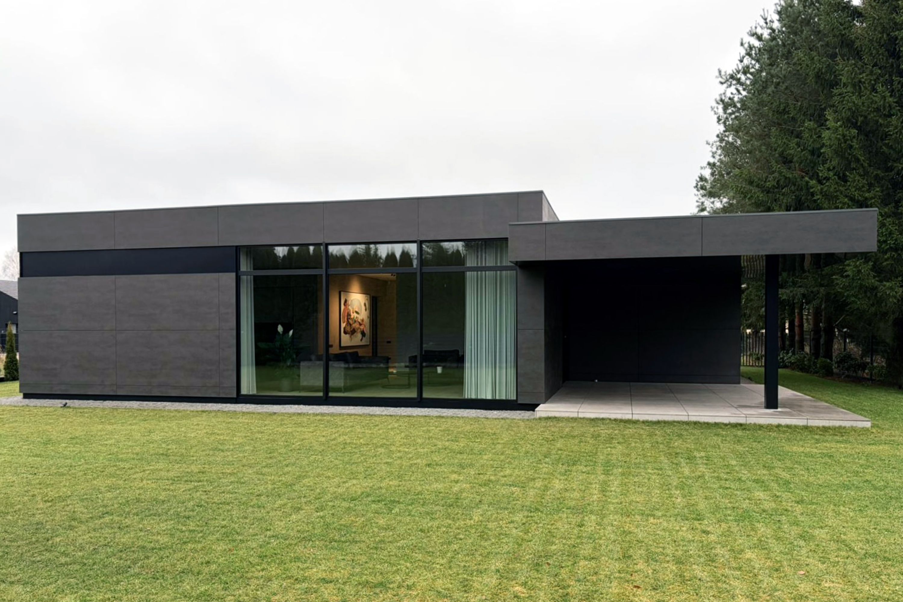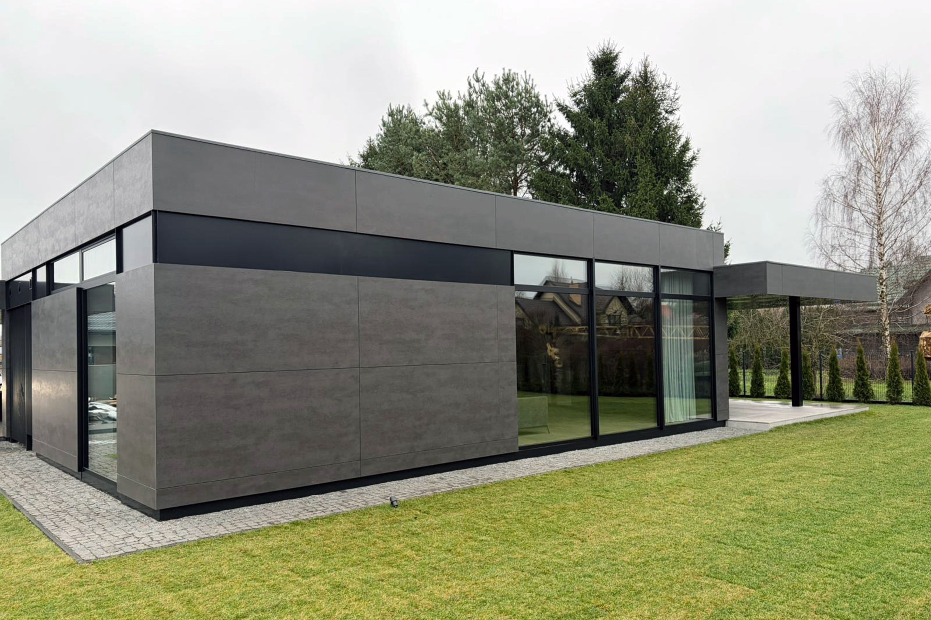 NOSAUKUMS: H150 RĪGA PLATĪBA: MĀJAS DZĪVOJAMĀ PLATĪBA 150m2, TERASES, AUTO NOJUME 75m2, SAIMNIECĪBAS TELPA 10m2 STĀVU SKAITS: 1 STĀVS PROJEKTS: BŪVPROJEKTS, DIZAINA PRJEKTS, AUTORUZRAUDZĪBA BŪVNIECĪBAS TEHNOLOĢIJA: PAMATI - PLĀTNE. SIENAS - BLOKI. JUMTA KONSTRUKCIJAS - KOPNES, JUMTA SEGUMS - PVC MEMBRĀNA, FASĀDES - VENTILĒJAMĀS FASĀDES, LOGI - ALUMĪNIJA LOGI, APKURE - GAISS-ŪDENS SILTUMSŪKNIS, VENTILĀCIJA - VENTILĀCIJA AR REKUPERĀCIJU